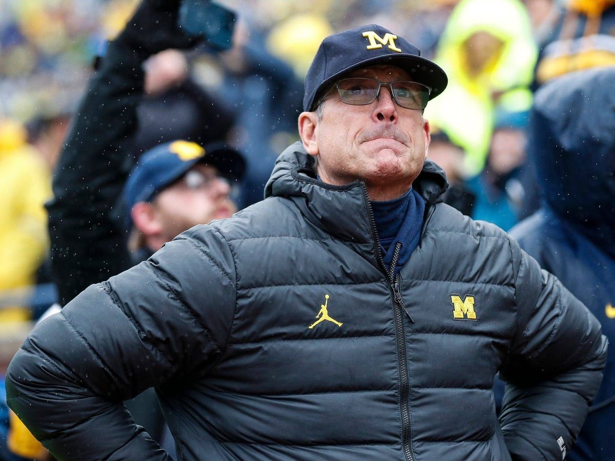 The Big Ten specified that Harbaughs suspension would apply only to the regular season If Michigan qualifies for the Big Ten championship game he would be allowed to coach in. Barring action by the court to put Harbaughs suspension on hold he is currently in line to miss the final three games of the regular season and return. Junfu Han The Big Ten has suspended Michigan coach Jim Harbaugh from the field for the final three games of the 2023 season amid an ongoing NCAA investigation into an alleged sign. The Big Ten Conference announced Friday it was suspending Michigan head football coach Jim Harbaugh from being on the sidelines at games for the remainder of the. Harbaugh did not take that decision quietly blasting the NCAA and dropping his I suggest we drop the term student-athlete for consistency line While that was eventually rescinded..